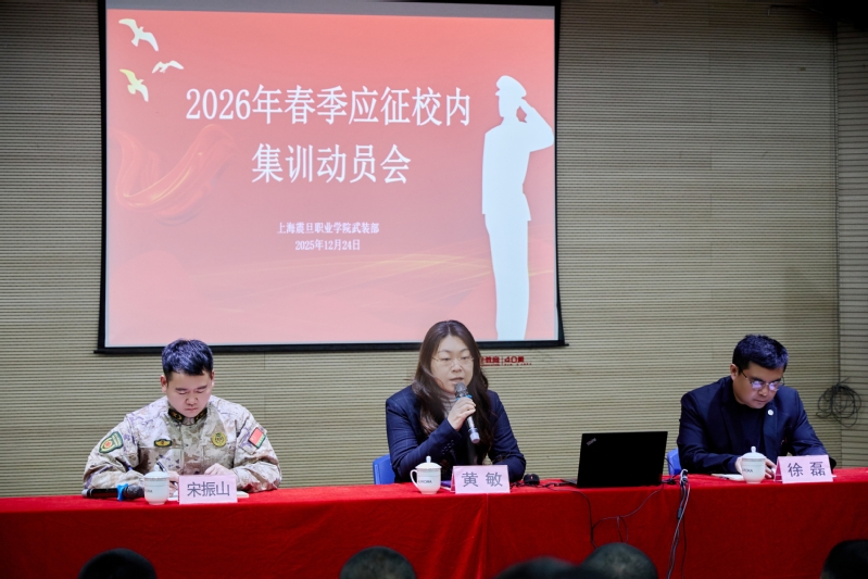 为扎实推进2026年春季征兵工作,切实提升应征青年的军事素养与参军热情,12月24日,我校武装部召开2026年春季应征校内集训动员会。党委副书记黄敏、校征兵工作站负责人徐磊出席会议。会议由武装部老师宋振山主持。